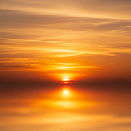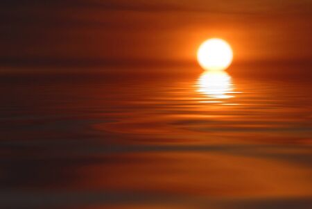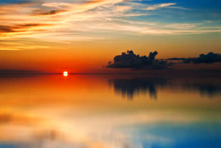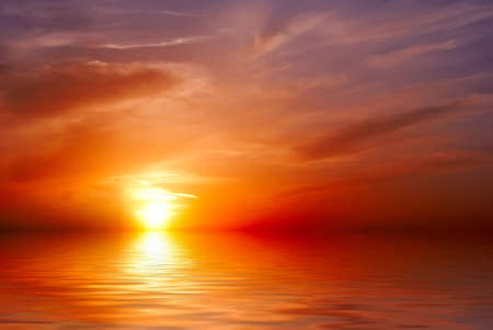 Sunset over the sea with reflection in water. Abstract background.