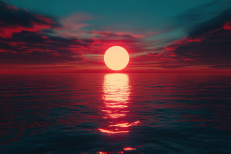 Surreal Ocean Sunset with Large Sun and Vibrant Colors