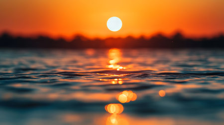 Sunset reflections on rippling water surface at twilight, serene nature concept