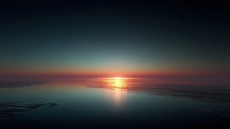 A serene sunset over a calm ocean with vibrant colors in the sky