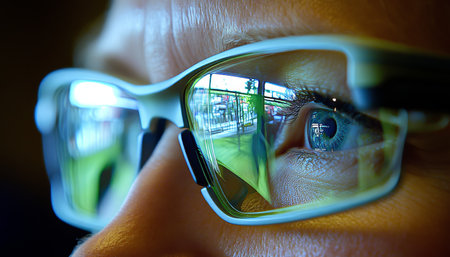 Modern Eyeglasses Technology Reflected in Close-up View, Contemporary Eyewear Design