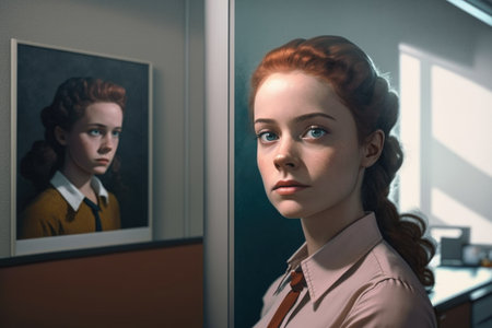 Discovering Complex Emotions: A Young Woman's Reflective Portrait. Concept Self-Exploration, Emotive Portraits, Inner Turmoil, Introspective Narrative