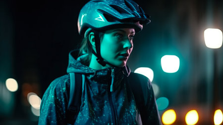 Night cycling adventure through city traffic chaos generated by artificial intelligence