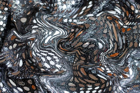 Abstract black and white fluid art background. Real holographic metallic foil texture with scratches and irregularities.