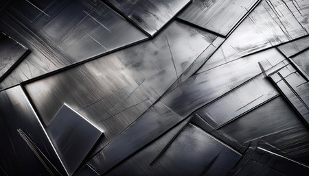A captivating abstract composition featuring metallic structures with reflective surfaces, showcasing geometric patterns and intricate layouts. The image highlights a modern technology aesthetic with depth and artistic flair perfect for various creative projects.
