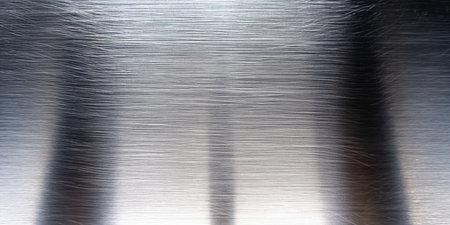 A striking image showcasing a shiny metallic surface with a smooth brushed texture and subtle light reflection, perfect for modern design applications and backgrounds.