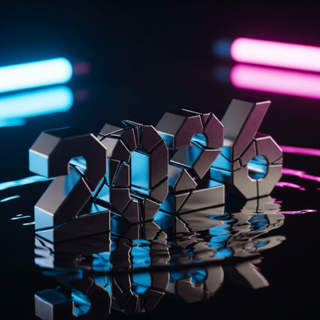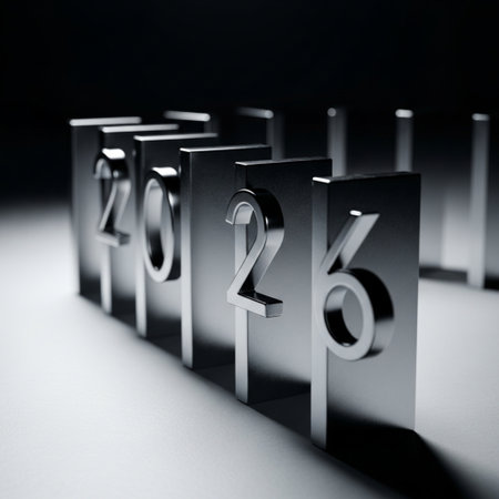 close up of the year two thousand and twenty six embossed on a silver textured surface