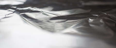 Shiny metallic silver banner reflecting light creating an abstract design, ideal for backgrounds, websites, or advertising
