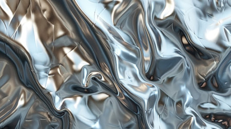 Abstract metallic texture with platinum sheen and chaotic wrinkles for design