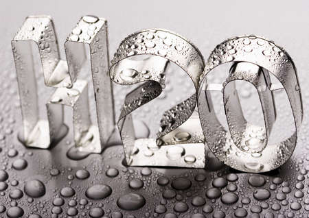 Happy New Year 2020 lettering made by gold and water splash around it. Isolated on black background. 3d illustration. Selective focus macro shot with shallow DOF.