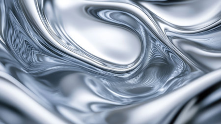 Close-up of a silver liquid swirl, forming an elegant and modern background ideal for luxury brand promotions and sleek banner designs.
