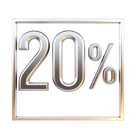 A gleaming metallic twenty percent symbol presented clearly on a plain white background.