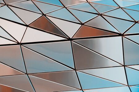A metal wall made of many triangles. Triangles with sharp corners and gradient transitions.