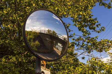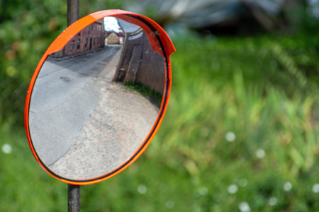 View of spherical viewing mirror for so-called dead zone. Driving safety concept.