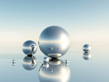 A stunning visual of numerous metallic spheres floating in a gradient background