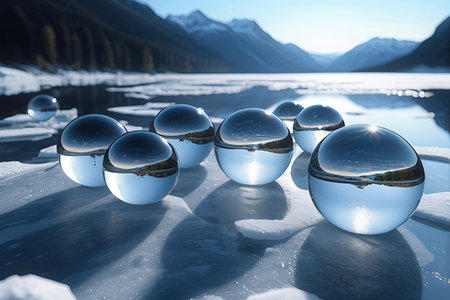 A captivating arrangement of glass spheres reflecting vibrant colorful lights, showing elegance and modernity in artistic design.