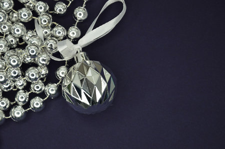 New year silver decoration on briliance background. Top view