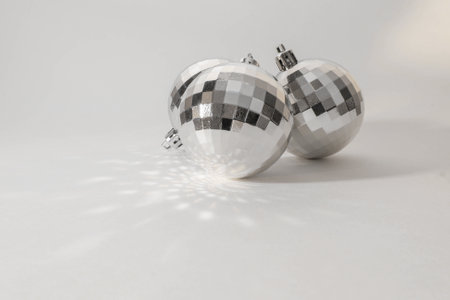 New Years silver disco balls on the Christmas tree
