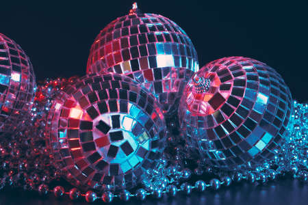 Shiny disco party background with mirror balls reflecting light