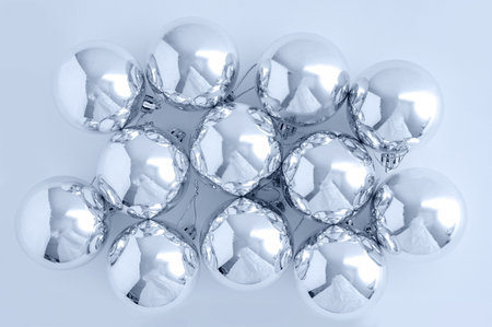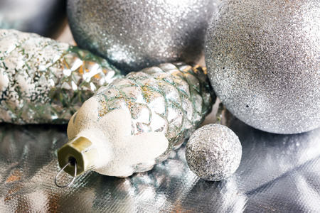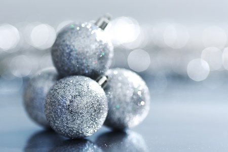 Silver Chtistmas baubles on abstract background
