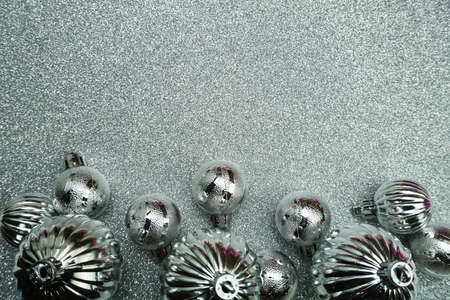 Christmas balls decoration ornaments with space copy on Silver glitter background
