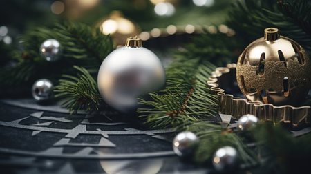 Christmas decorations on a black background, AI