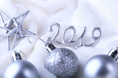 new year decorations silver color with confetti