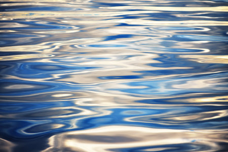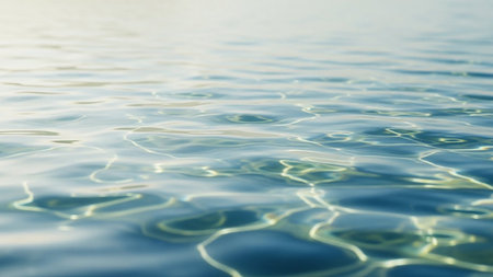 A tranquil image of gentle water surface reflecting soft sunlight, creating serene ripples and calming patterns that evoke peace and relaxation during golden hour.