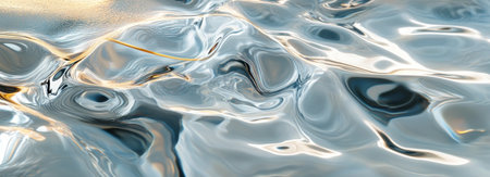 Abstract water texture with ripples and swirls in white, gray, black, silver, gold, and yellow colors. --ar 83:30 --v 6.1 Job ID: 387533a6-7682-44bf-a10c-48ecfb98903a