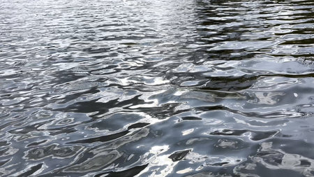 Water surface with ripples and waves, close-up view.
