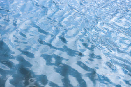 blue water surface with ripples and sunlight reflections closeup abstract background