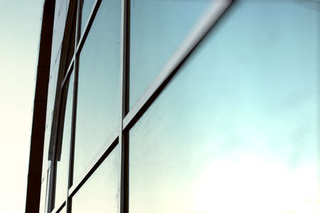 Glass windows of an office building in a modern city in the financial district
