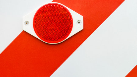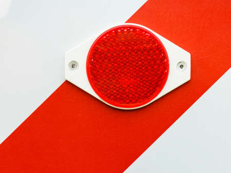 Close up of reflecting red elements, warning reflectives, danger problem white stripes.