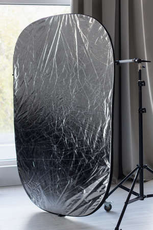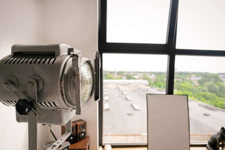 Big LED studio spotlight and tripod for professional video or movie commercial shooting.