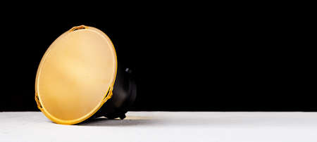 Standard reflector with a matte yellow diffuser on a black background. Attachment for studio flash with bowens mount.