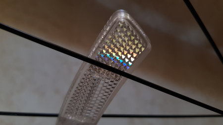 Close up view of bicycle reflector revealing prismatic texture that creates stunning rainbow spectrum.
