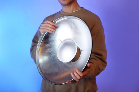 Standard reflector on a white background. Attachment for studio flash with bowens mount.