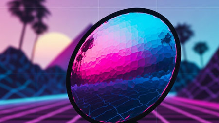 Futuristic display with circular podium on iridescent background for minimalist product presentation