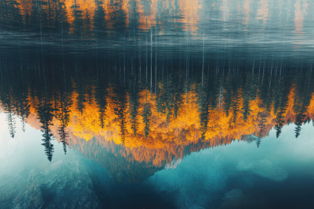 Enchanting Autumn Reflection at a Serene Lake cut elements, themed designs.