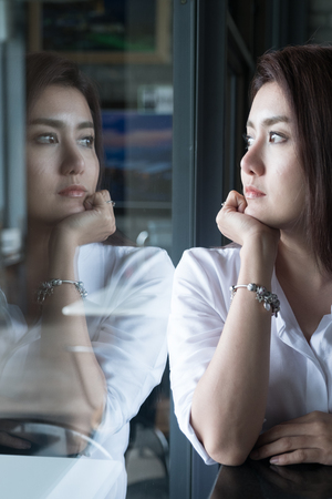 Reflection of Thai girl looking for something in the emptiness that frighten her.