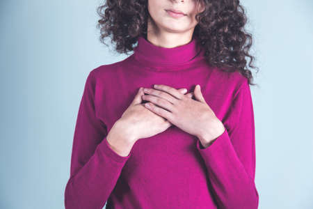 Young woman with her hand on her chest