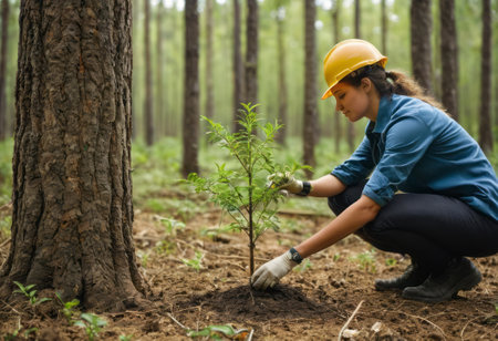 Volunteer planting trees as part of a reforestation project, reflecting environmental stewardship and the importance of reforestation efforts.