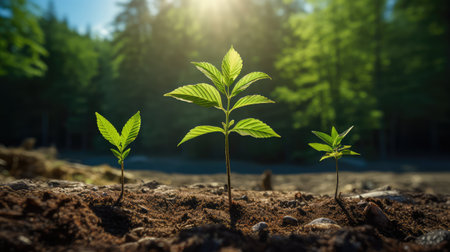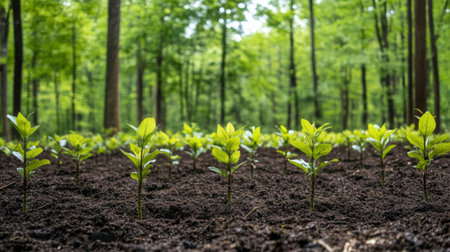 Image features small green trees growing from rich soil, ideal for themes around nature, sustainability, and eco-friendly practices. Perfect for garden, landscape, and environmental projects.