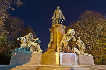 The Maxmonument in Munich stands on a ttraffic island in the Maximilian street in the Lehel district.