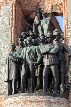 Close detailed view of Republic Monument on Taksim square,a popular destination in Istanbul,Turkey.29 April 2018