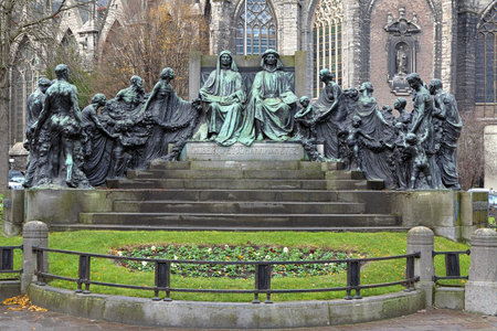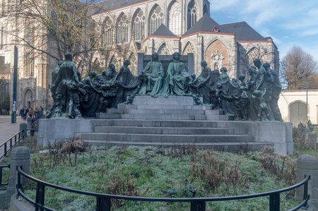 Ghent, Belgium - January 24, 2026: Van Eyck brothers statue.