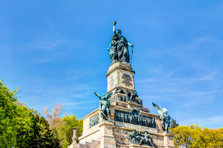 Niederwald monument represents the union of all Germans - located in the Niederwald landscape park, near Rudesheim am Rhein in Hesse, Germany