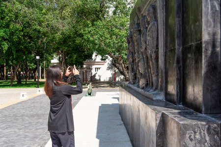 Budapest, HUNGARY - FEBRUARY 15, 2015 - Bronze bas-relief of memorial in Heroes square