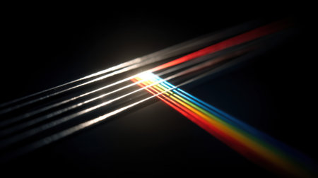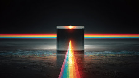 This striking abstract image features light reflecting through a prism, creating a vivid rainbow spectrum against a dark background, evoking a sense of depth and wonder.