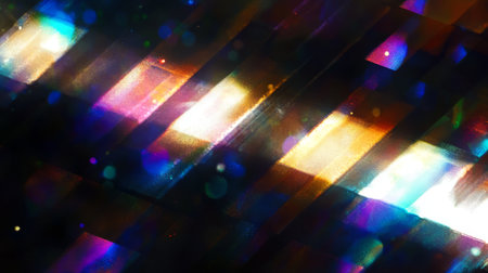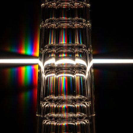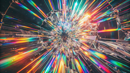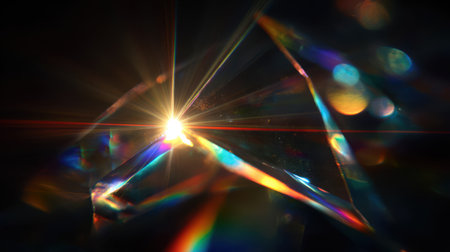 The phenomenon of light diffraction is visually represented as it passes through a prism, creating a vibrant array of colors and patterns